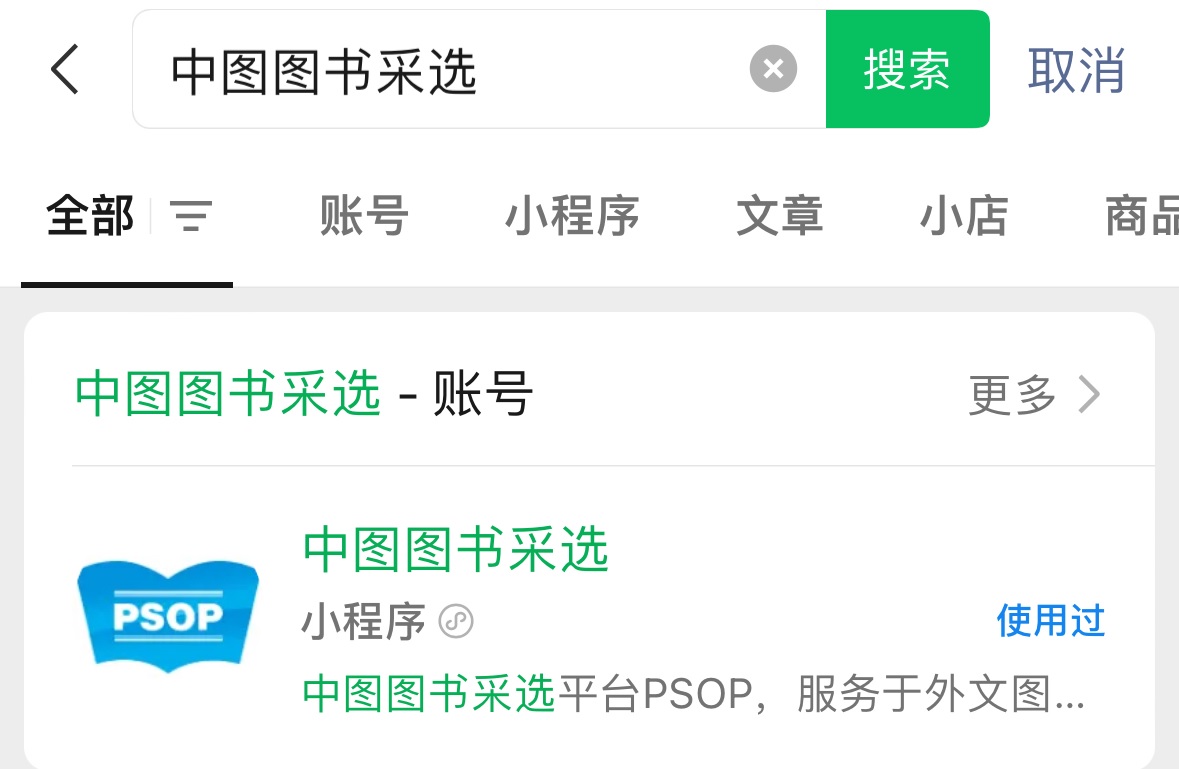2. 微信首次使用需在搜索框中输入“中图图书采选”,点击搜索结果中的小程序进入;继续点击屏幕最下方“书展”图标,选择“天津中医药大学外文原版图书云书展”展厅,方可使用。