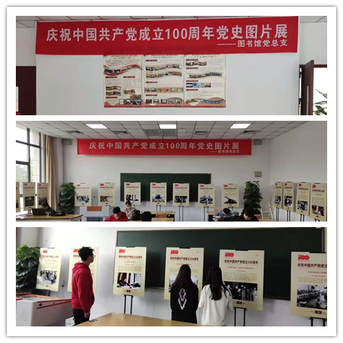 按照图书馆党总支的部署,阅读推广部“庆祝中国共产党成立100周年党史图片展”在图书馆一楼阅览室(乙101)开展。图片展以庆祝建党百年华诞为主题,以传承红色基因为主调,内容为党史重要事件,图文并茂,全方位展现了我党艰苦卓绝的奋斗史、波澜壮阔的革命史、可歌可泣的光荣史,再现了各个历史时期共产党人不忘初心、砥砺前行的伟大实践和崇高精神。