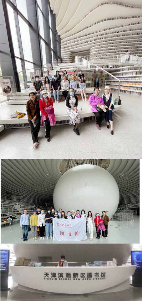 返程途中,大家结合图书馆新馆建设,前往有着“天津最美图书馆”之称的滨海新区图书馆,开展实地调研学习。走近极富特色的“滨海之眼”和“书山有路勤为径”,近距离感受“最美图书馆”的建筑之美、人文之美和智能服务,增进业务学习,提升服务水平,切实将党史学习教育成果转化为干事兴业的精神力量,落实到“为人民群众办实事”的实践中来,为图书馆新馆建设贡献智慧和力量,推动学校“双一流”建设事业发展。