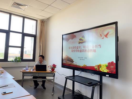 2021年5月28日上午10点,在图书馆乙404,图书馆党总支邀请校党委常委、宣传部部长崔强围绕意识形态工作为全体教职工开展了专题培训讲座——《强化责任意识,明确使命担当,筑牢学校意识形态阵地》。图书馆党总支书记刘怡主持会议,正处级组织员邹东明、副馆长郑凯出席,全体教职工参加讲座。