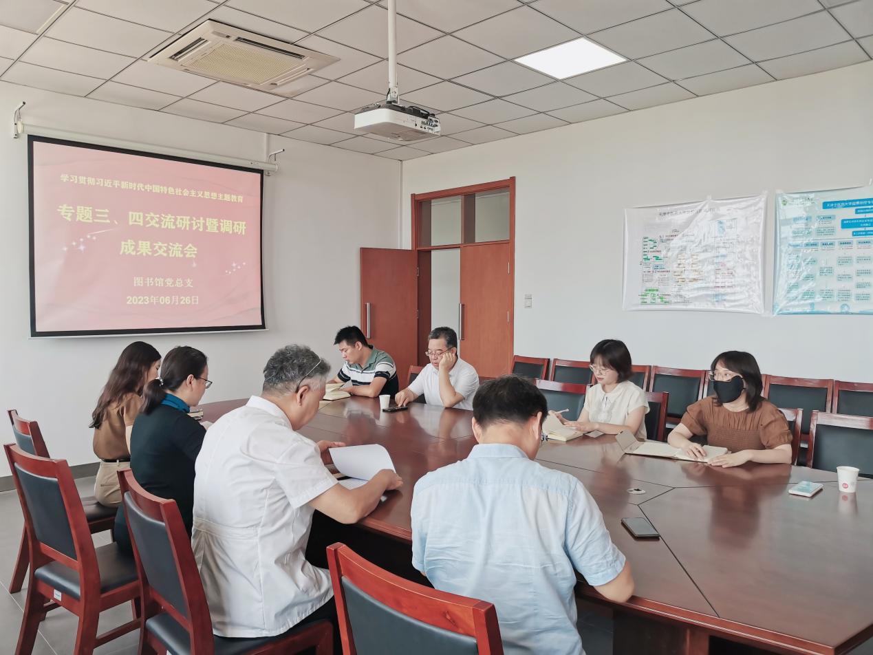 交流会上,图书馆党总支书记刘怡分享了学习专题三、四的心得体会和开展《“充分发挥图书馆育人功能”——新馆文化建设调研》的成果。聚焦图书馆高质量发展,调研团队线上线下调研了天津大学图书馆、南开大学图书馆、天津医科大学图书馆、中新友好图书馆、保税区天津港图书馆、山东中医药大学图书馆、长春中医药大学图书馆等十余所高校图书馆和公共图书馆。她表示,通过上半年的走访调研,图书馆学习到了很多兄弟馆优秀的建馆经验,结合本馆实际,研究制定了新馆建设需求,正在积极推动落实。今后,图书馆要落实习近平总书记在文化传承发展座谈会上的重要讲话精神,担负起新的文化使命,努力建设中华民族现代文明,坚定文化自信、担当使命、奋发有为,将习近平总书记关于古籍保护、中医药文化传承发展、文化自信等方面的重要指示批示精神融入图书馆实际工作中来,瞄准三个方面集中发力:一是瞄准新时代高校图书馆发展方向,加强调查研究,积极吸收新思想新知识、好经验好做法,结合新馆建设到兄弟馆学习交流,并结合调研情况与自身实际,推动全馆群策群力,研究、谋划新馆建设后的组织架构、发展目标、人才培养体系等,切实搭建起图书馆“十四五”发展的“四梁八柱”;二是以党建工作为引领加强图书馆内涵建设,把落实立德树人根本任务作为一切工作的出发点和落脚点,从工作规范、制度机制、队伍建设等方面做好服务育人体系的顶层设计,不断提高自身服务能力;三是肩负文化育人使命,挖掘并充实馆藏红色资源,多样化开展红色主题阅读推广活动,积极引领当代大学生阅读经典,传承红色基因,弘扬中医药文化,进一步发挥图书馆文化育人、“三全育人”的职能,营造“书香天中”的文化氛围。