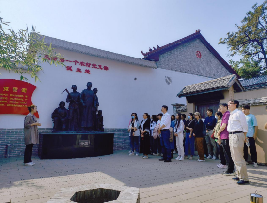 为庆祝中华人民共和国成立75周年,深入学习贯彻党的二十大和二十届二中、三中全会精神,深刻领会习近平总书记视察天津重要讲话精神,进一步强化师生党员理想信念,践行四个“善作善成”要求,9月24日,管理学院党委与图书馆党总支联合开展“赓续红色血脉,凝聚奋斗力量”主题党日活动,组织师生党员40人前往安幸生烈士故居、天津第一个农村党支部旧址、海河红船实践学习。