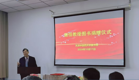 捐赠仪式上谢教授表示将近30年主编的17种48册学术著作无偿捐赠天津中医药大学图书馆,供学校师生教学、科研使用,促进学术交流,互通有无。希望通过此次捐赠,助力中医药知识的传播与共享,让更多的人能够享受到阅读的乐趣,为推动中医药教育事业的发展贡献一份力量。